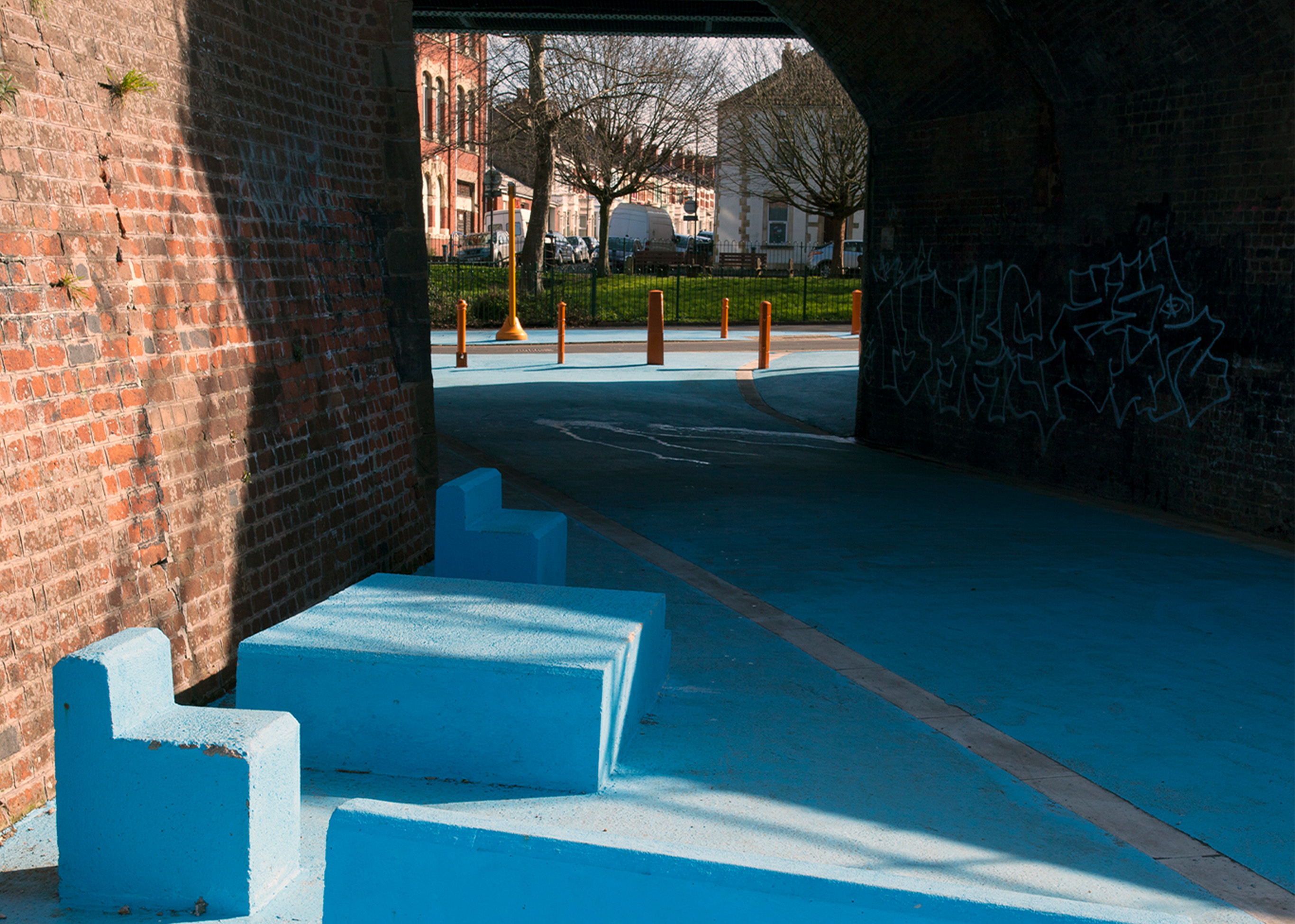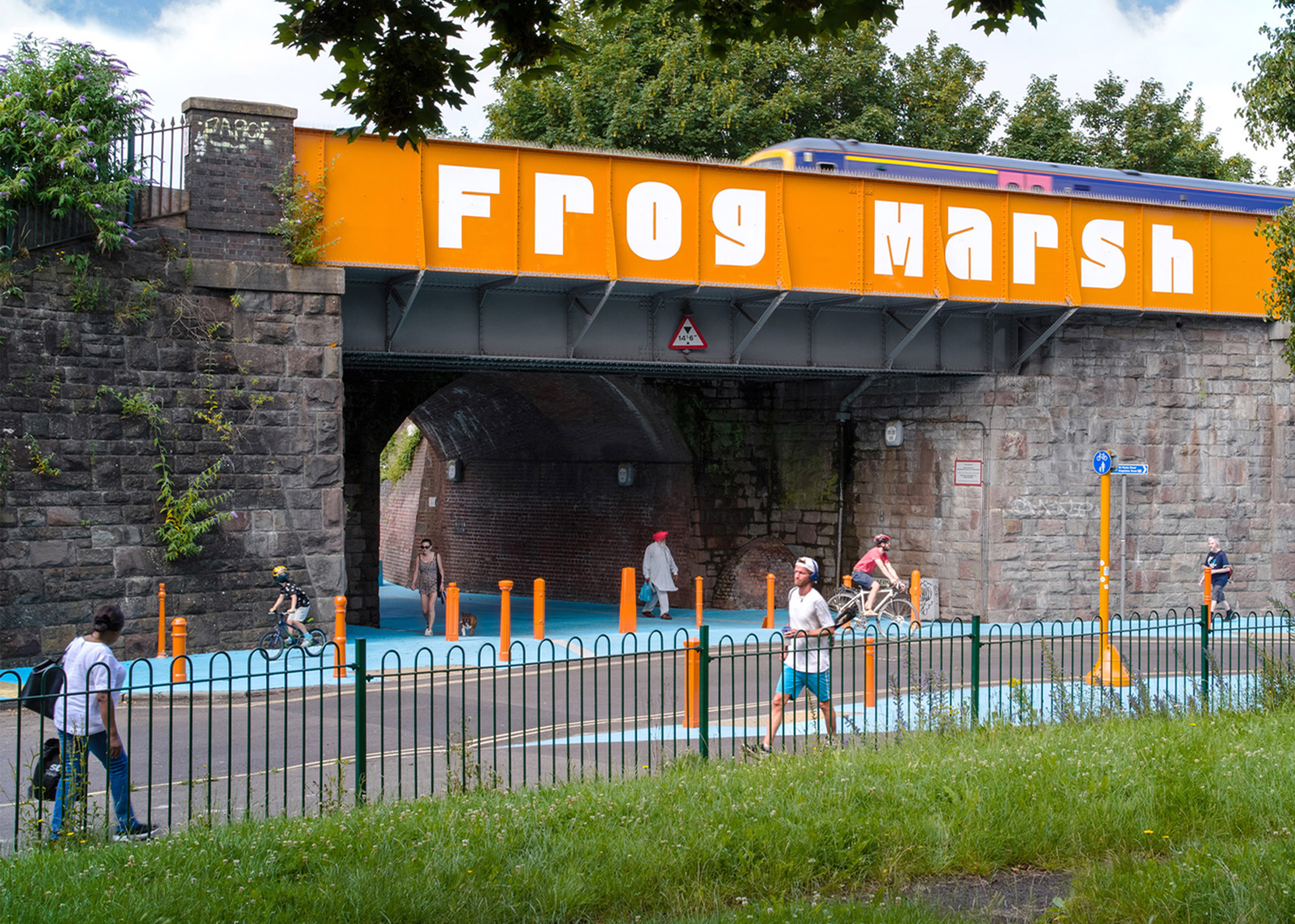 The area previously had no name, being known as “the railway bridge outside the school”. Giving the area a name and identity was an opportunity to create a sense of ownership and value. A public vote decided the new name: Frog Marsh, the historical name for this area of Easton, which was known as Frog Marsh until around 1950. A specially designed font was created by Studio Ard.